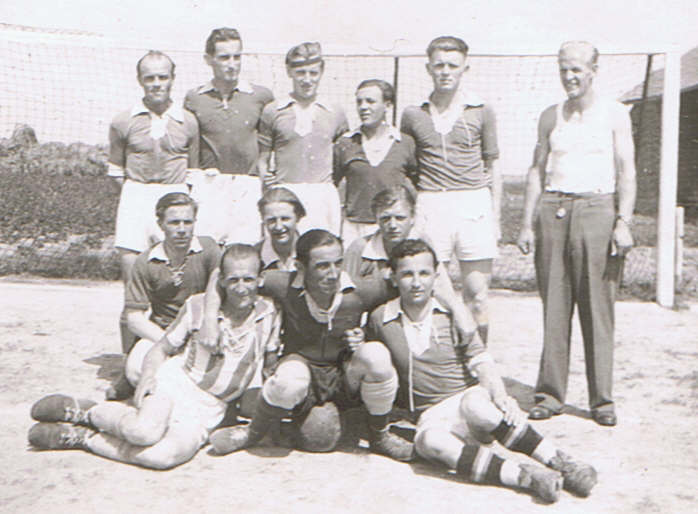 In der hinteren Reihe sind von links zu sehen: Otto Zimmermann, Paul Siebrecht, Erich Kutschker, Fritz Daemelt, Rolf Glahe, Willi Wacholz.