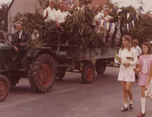 Auf diesem Bild ist der Festwagen des Männergesangvereins "Harmonie" Hettensen zu sehen, der an dem Festumzug teilnahm, der anlässlich des 50jährigen Bestehens des Sportvereins Grün-Weiß Hettensen unter großer Anteilnahme der Bevölkerung sich durch die Straßen unserer Ortschaft
